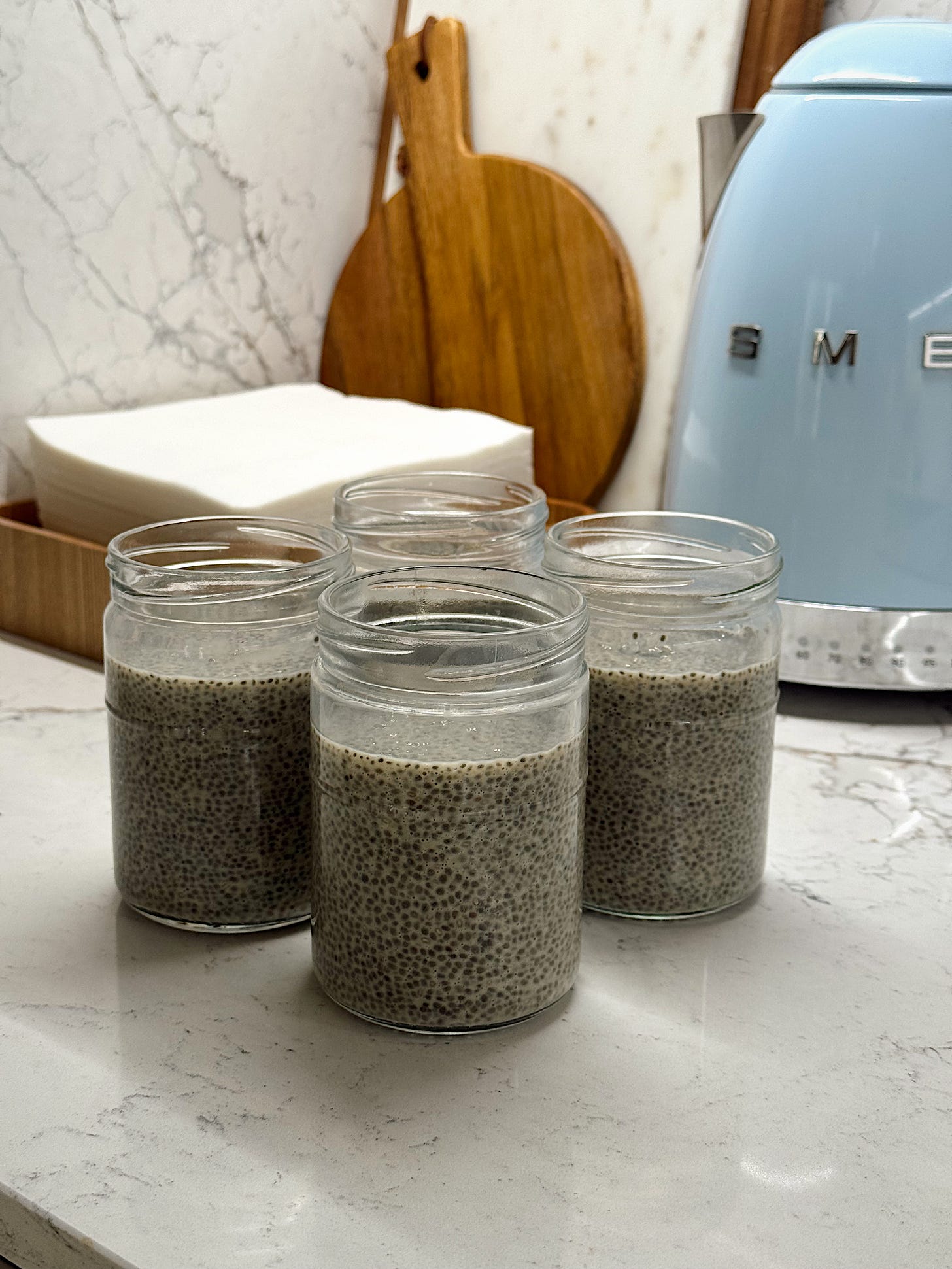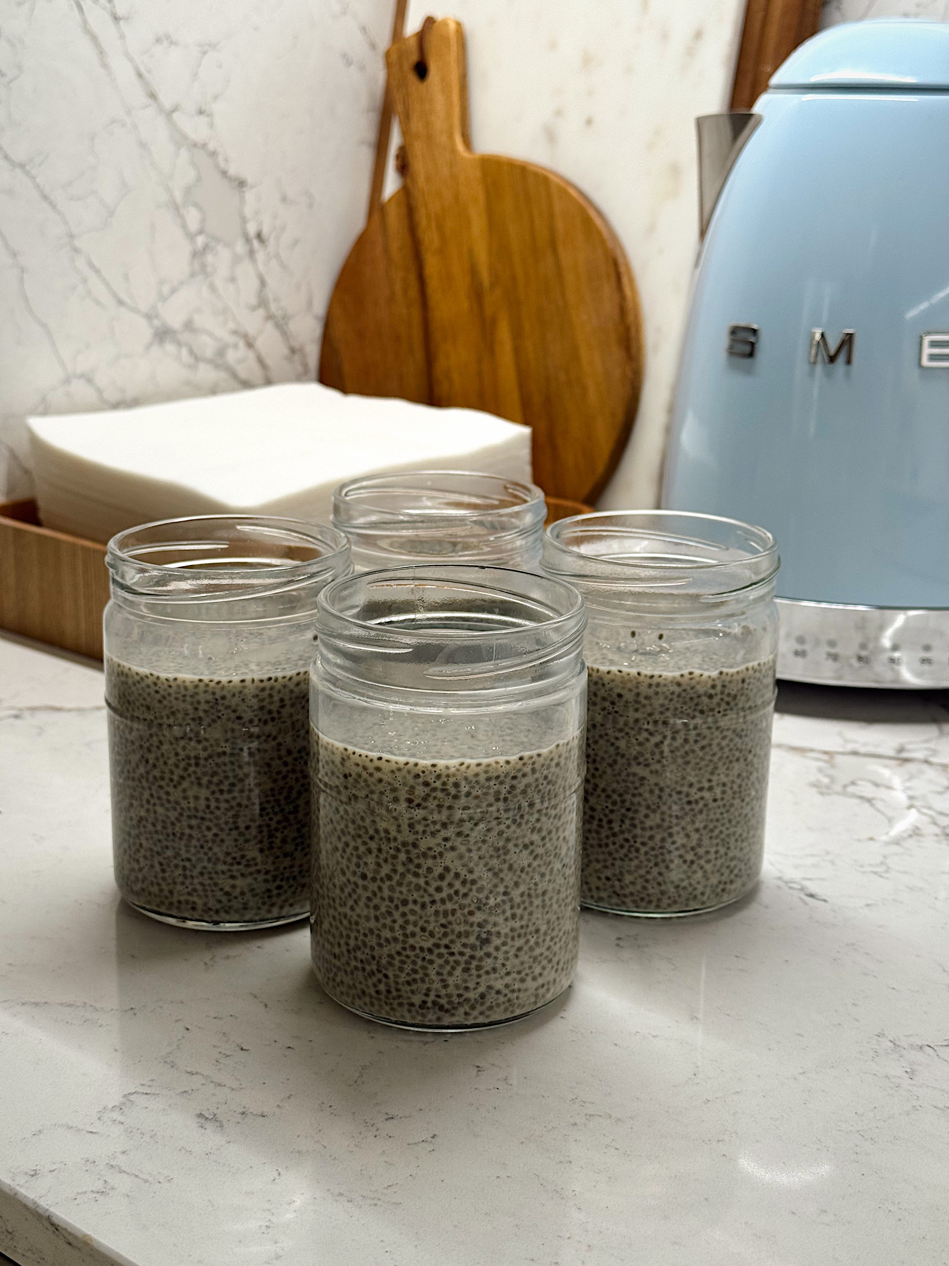 Combine all ingredients in a bowl or jar and mix well. Let it sit for 5 minutes, then stir again to prevent clumps. Refrigerate for at least 1 hour or overnight, until thickened. Stir before serving (add more milk if needed) and add toppings of choice such as granola, fruit, nuts and seeds, or Greek yogurt.