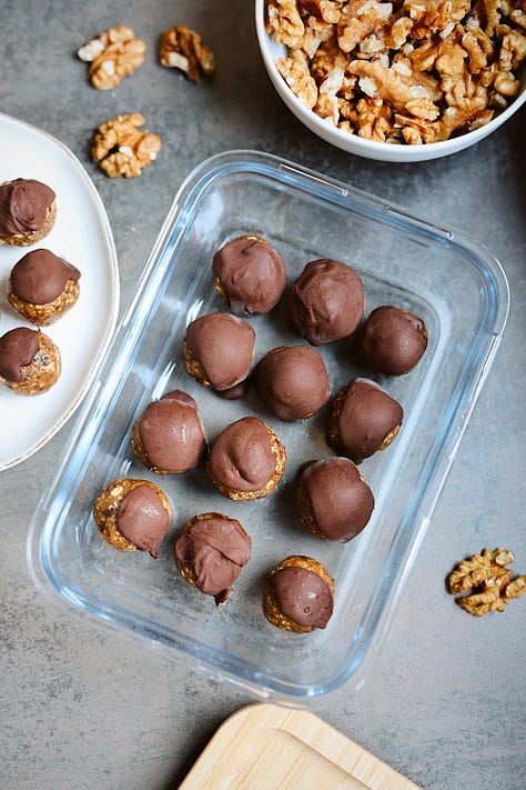 Macros (per 1 ball, makes 24): ~90 kcal | P: 2.3 g | C: 10.5 g | F: 4.9 g